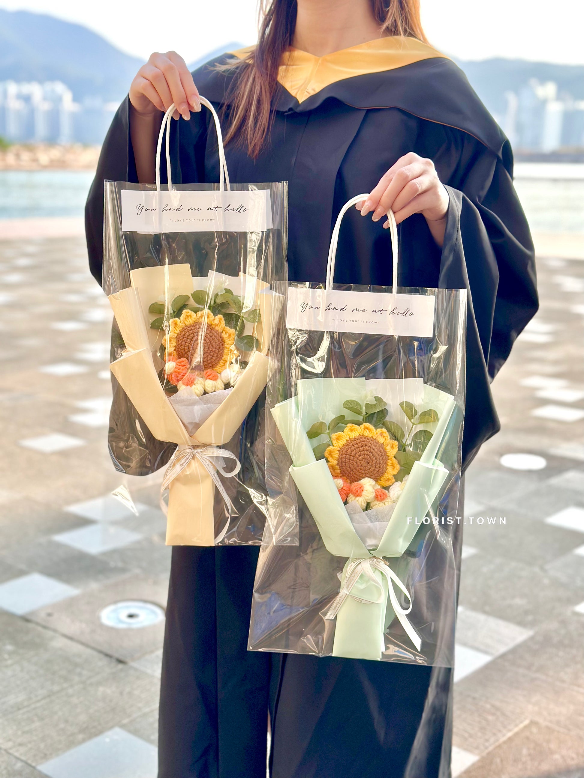 黃色/綠色針織向日葵花束S SIZE